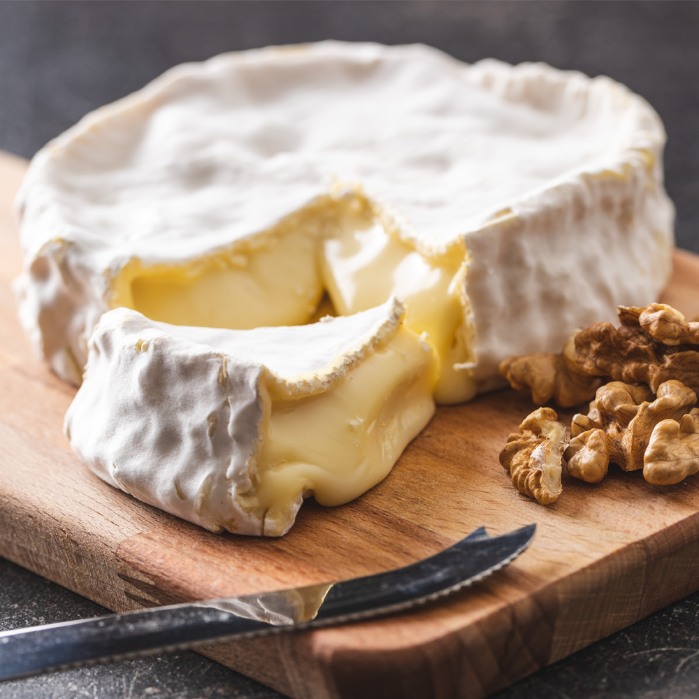 A creamy white-rinded organic cheese from Caws Cenarth in Wales.