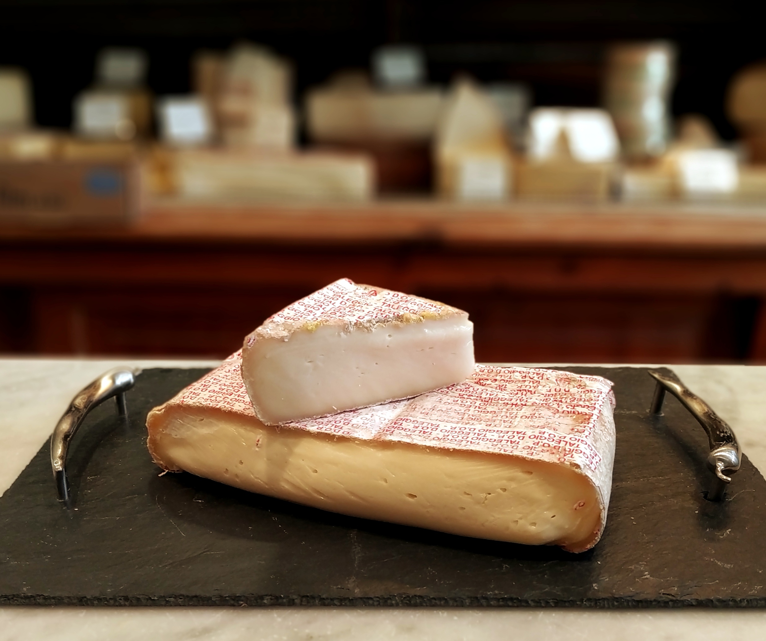 Member of Northern Italy’s “Stracchino” family of “tired cow’s milk” cheeses. Tired cows produce less watery, richer and more acidic milk creating creamy rich cheese. Washed in water or brine giving it a pinkish tinge, this elastic cheese has a tangy lemony flavour with raisins, nuts and farmyardy tones with a fruity finish.