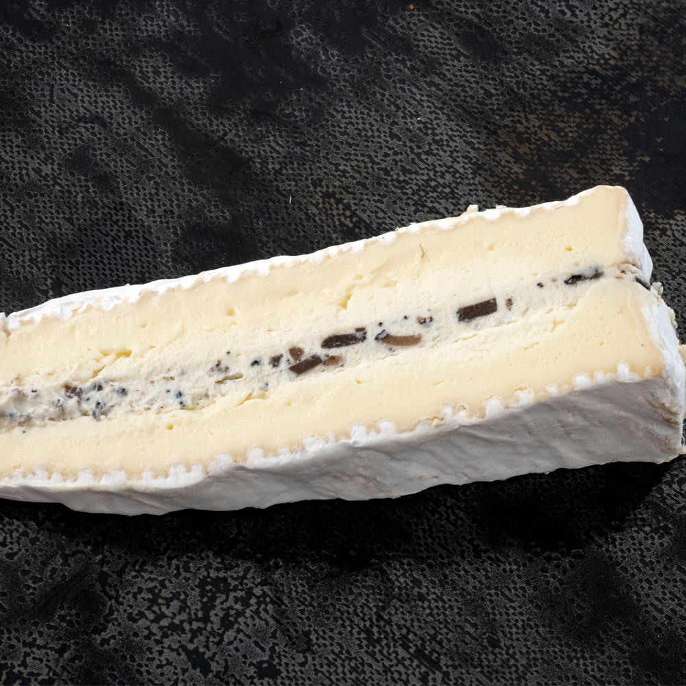 This famous delicacy is made using Brie de Meaux as a base, before filling it with a mixture of triple crème cheese and minced black truffle. The buttery texture and mushroomy flavour of the cheese is accentuated by the richness and earthiness of the truffle and there is more creaminess that you’d expect thanks to the Delice de Bourgogne! Rich, decadent, and most of all, delicious. The filling is made and the cheese is prepared here in the shop.