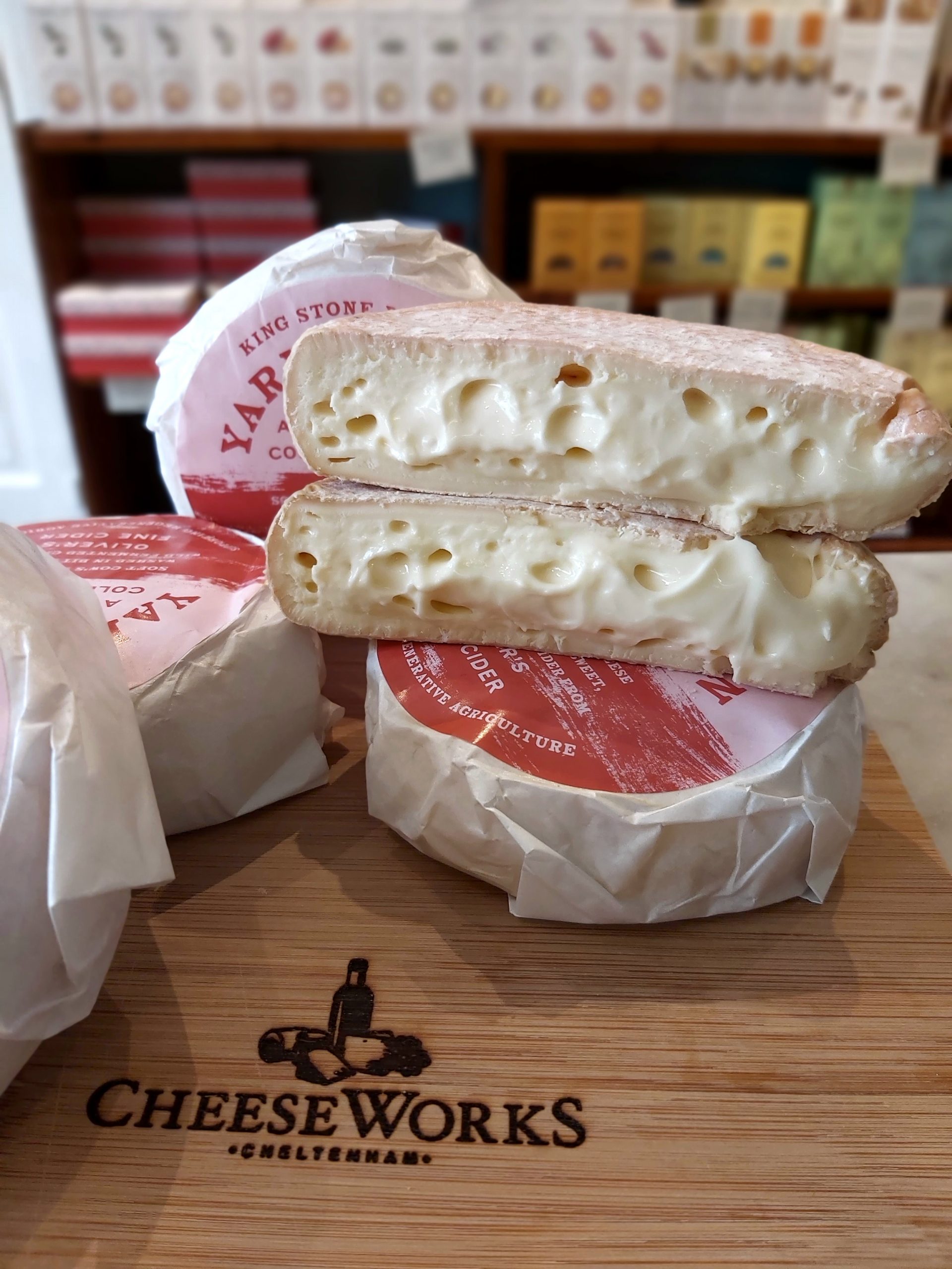 Yarlington was born from a collaboration between local skilled artisans. David Jowett, head cheese maker at King Stone Dairy, Cellarman, and cider maker Tom Oliver. This soft, rich, oozy cheese is washed in a wild fermented cider and brine during maturation. This does allow the cheese do develop a pungent, complex rind but to offer fruity and milky aromas. A farmyardy aftertaste is noticeable, which is reminding us of its French cousin, Reblochon. After all it’s where Yarlington inspiration originally comes from!